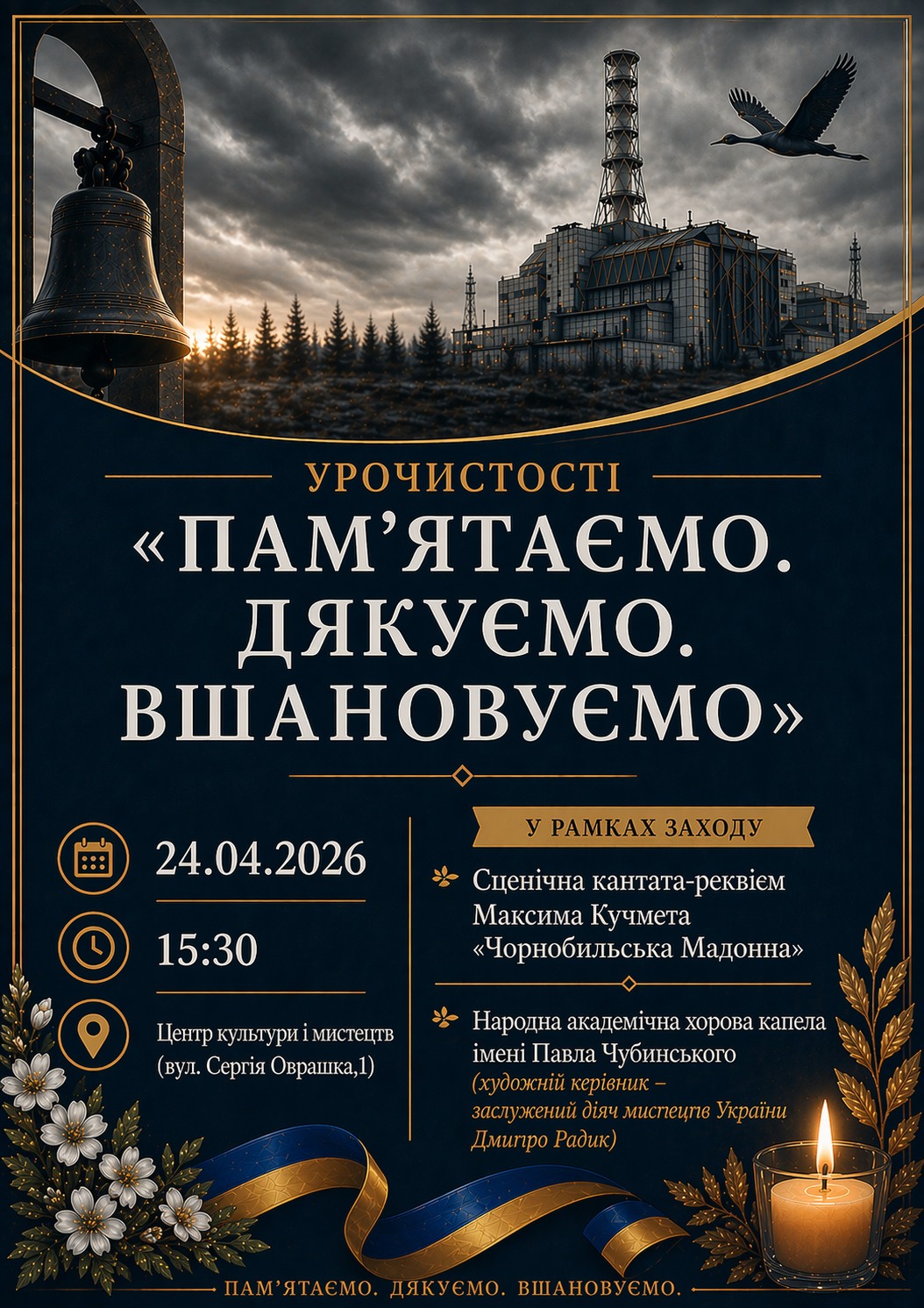 Запрошуємо на пам’ятні заходи, присвячені 40-м роковинам Чорнобильської трагедії — події, що назавжди змінила історію України та світу.